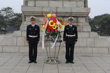 4月1日下午,我們在系教員常路賓帶領(lǐng)下,來到位于錦州的遼沈戰(zhàn)役紀(jì)念館,向英雄紀(jì)念碑敬獻(xiàn)花籃。儀式在雄壯激昂的《獻(xiàn)花曲》中拉開序幕,兩名禮兵邁著鏗鏘有力的禮步將花籃緩緩送到紀(jì)念塔正前方。花籃挽聯(lián)上寫道:“功業(yè)常齊天地永,紅旗自由后人擎;中國人民解放軍海軍工程大學(xué)敬挽?!痹谥鞒秩说慕M織下,我們統(tǒng)一脫帽,向烈士紀(jì)念塔默哀一分鐘。并重溫了入伍宣誓。最后,教員對我們說道:“同志們,歷史證明,強(qiáng)國必先強(qiáng)軍。今天的你們是以共和國未來海軍軍官的身份來到此地,更應(yīng)當(dāng)學(xué)習(xí)先烈們的優(yōu)秀品質(zhì),不斷磨礪自己,努力提升自己,在強(qiáng)軍興軍的征程上奉獻(xiàn)自己的青春熱血!”