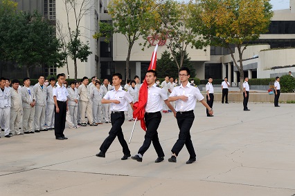 雖然在學(xué)校參加了大大小小的升旗儀式也有一年之久了,經(jīng)驗(yàn)也算比較豐富的了,但是在航星集團(tuán),在這么多員工面前升旗我還是第一次。這不僅僅是一次升旗,這還是向集團(tuán)的員工們展示我們的機(jī)會(huì),我們來(lái)到這里,一舉一動(dòng)都代表著學(xué)校的形象,再加上上屆學(xué)長(zhǎng)的表現(xiàn)非常出色,這讓我感覺(jué)到無(wú)比的壓力。所以在得到升旗任務(wù)的時(shí)候我們就開(kāi)始準(zhǔn)備了,經(jīng)過(guò)幾次的篩選,選出了包括我在內(nèi)的幾個(gè)護(hù)旗手,他們都是方隊(duì)出身,隊(duì)列動(dòng)作過(guò)硬,是護(hù)旗手的不二人選。再有就是升旗的隊(duì)形排列,之前的學(xué)長(zhǎng)設(shè)計(jì)得非常好,但是我們想有所創(chuàng)新,在我們幾個(gè)負(fù)責(zé)人的精心設(shè)計(jì)之下,我們又設(shè)計(jì)出了一個(gè)屬于我們自己的隊(duì)形。之后就是無(wú)數(shù)次的演練,每個(gè)環(huán)節(jié),從入場(chǎng),旗手交接旗,升旗,揚(yáng)旗,都經(jīng)過(guò)了研究和排練。